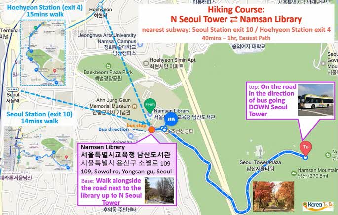 - 도보 코스: 남산 공원 입구 → 남산 정상 → 하산